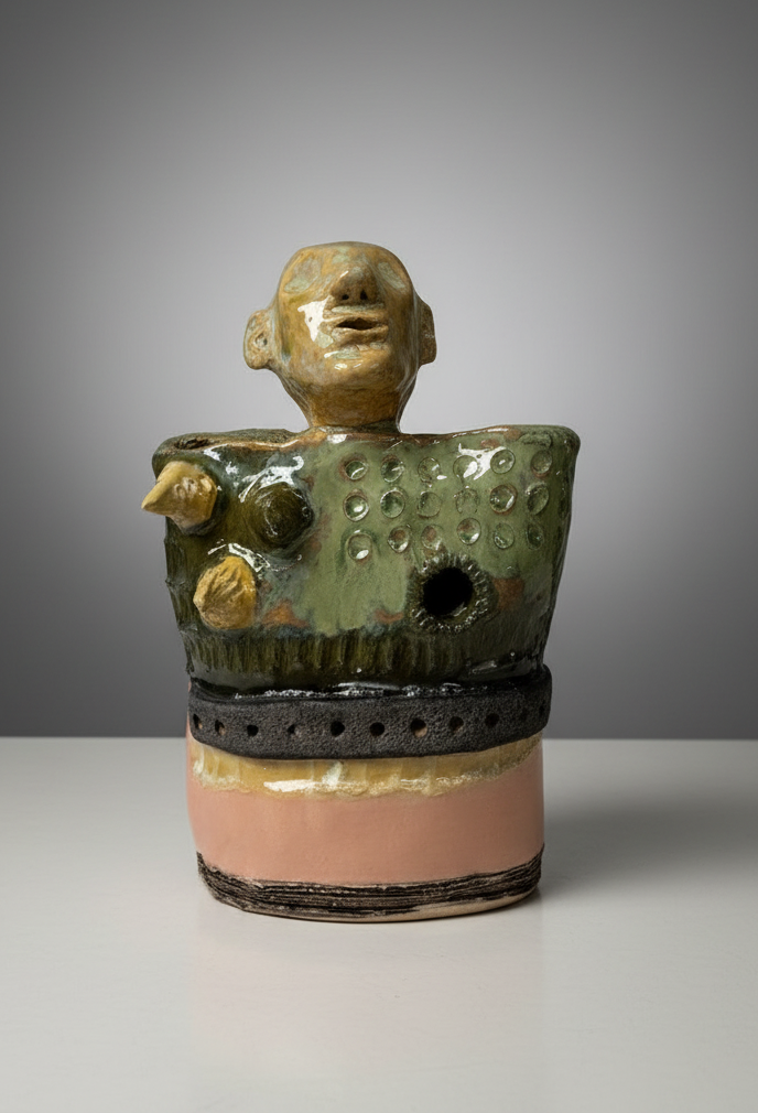 Keramikk skulptur med ulike glasurer